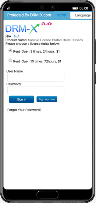 - User Authentication: When a user opens an encrypted file, a login authentication window will pop up and only authenticated users can open the encrypted file. The authentication rules can be verified by DRM user system or integrate DRM system with your user system, after integration, the authentication rules will be defined by you, for example, verify the user's IP, whether he/she has purchased a certain course on your website and so on.
